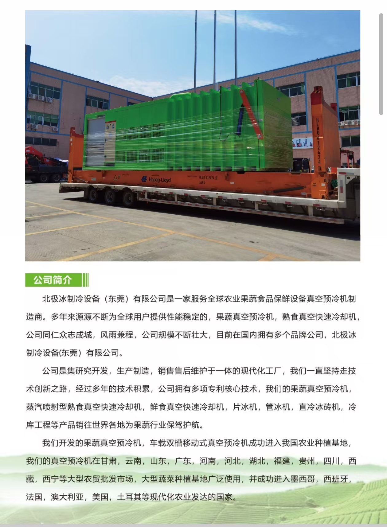 北極冰制冷設(shè)備(東莞)有限公司是一家果蔬真空預(yù)冷機品牌廠家,提供果蔬真空預(yù)冷機批發(fā)價格、果蔬真空預(yù)冷機哪家好,產(chǎn)品主要銷往深圳、廣州、湛江、蘭州、云南、湖北、河北,內(nèi)蒙等地。